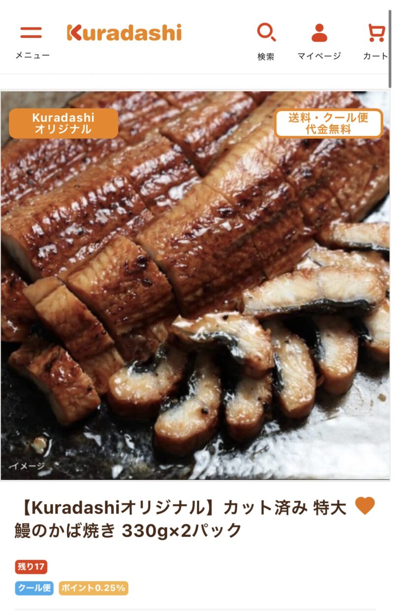 特大サイズの鰻のかば焼き 330gx2パック=660gです。写真では見づらいと思いますが食べやすくカットされているので小分けにして食べようと思います。